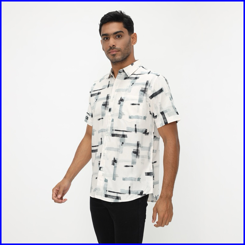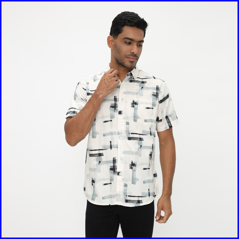 Bossqu21 Baju Kemeja Pria Lengan Pendek Motif Modern Fit Katun 33237 Abu