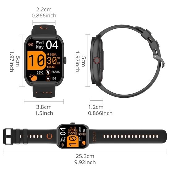 COLMI P86: 1.93" AMOLED, 1ATM WR, BP/SpO2/HR Monitor, Cycle Track, BT Call, 22mm Strap, New 2025
