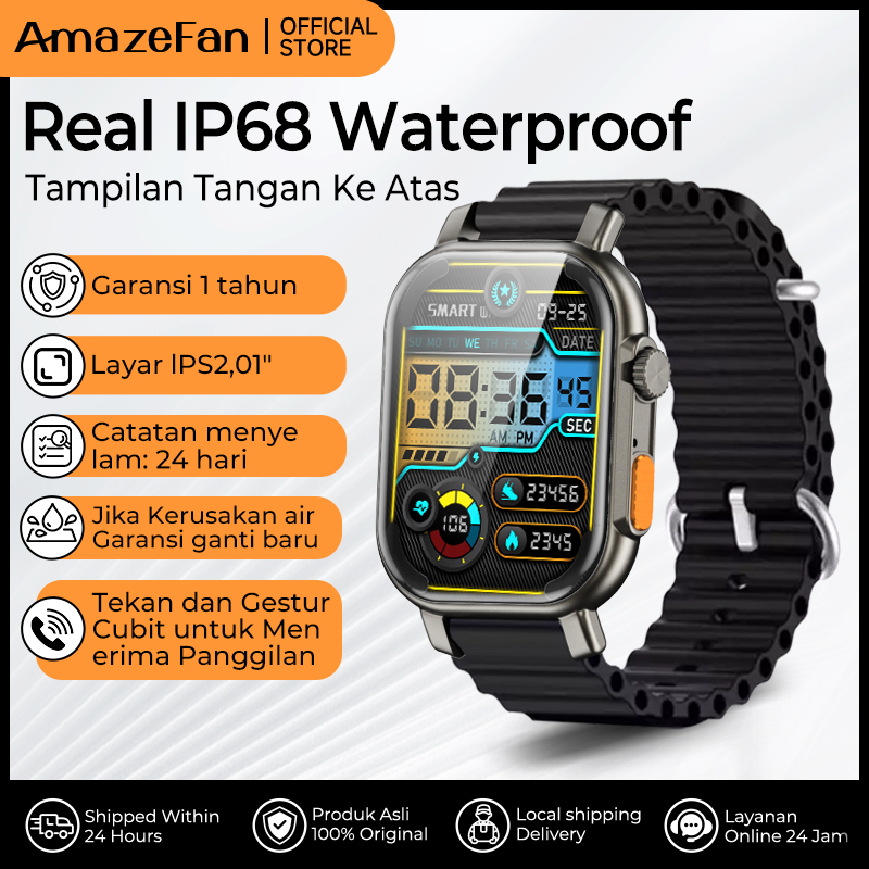 AmazeFan jam tangan smartwatch pria IP68 Waterproof HD 2.01 inch IPS Bluetooth Sports Jam Tangan