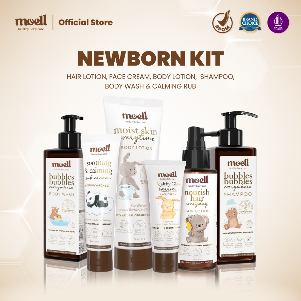 Moell Newborn Kit - Body Lotion 185gr & Face Cream 40gr & Calming Rub Cream 50gr & Body Wash 185gr & Shampoo 185gr