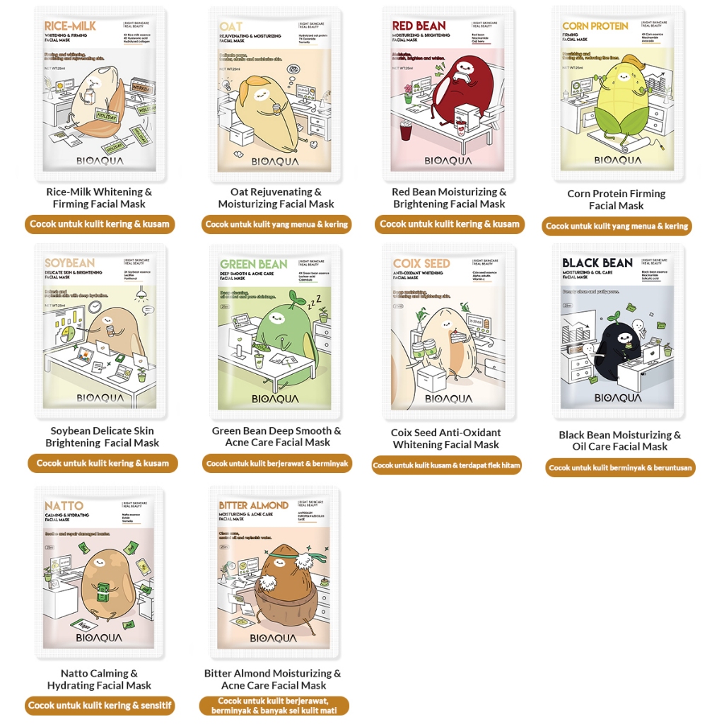 SHEET MASK BIOAQUA Masker Wajah Cereal Sheet Mask & Biji Buah Face Mask 25ml Masker Muka Glowing Rice-Milk pencerah kuli