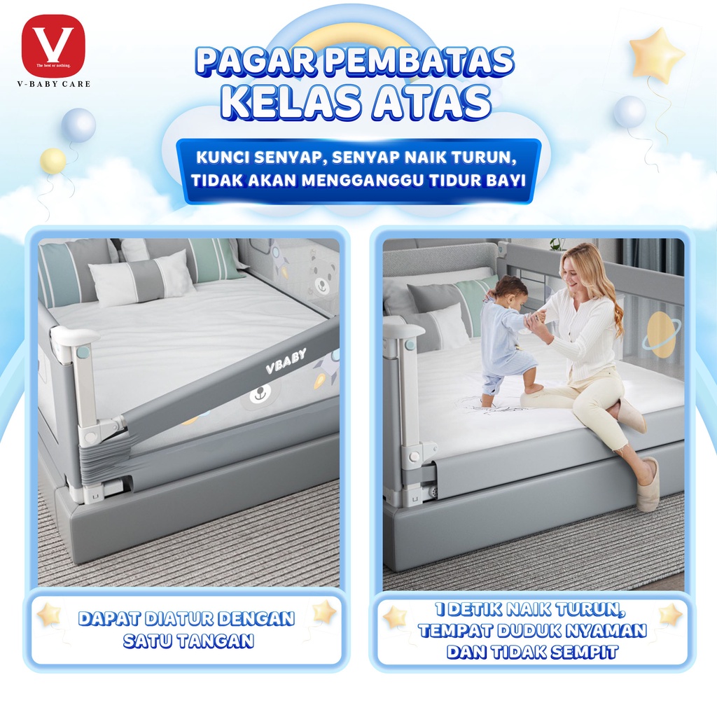 V-BABY CARE Baby Bedrail Baby Bed Rail Safety Guard Bedguard Fence Extra Tall Pembatas Pengaman Pagar Kasur Bayi Tempat