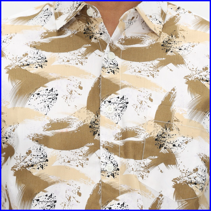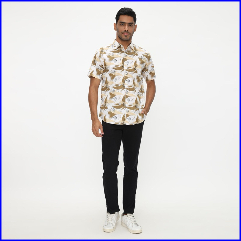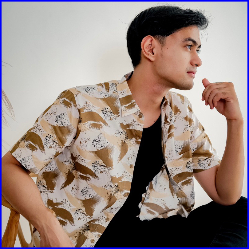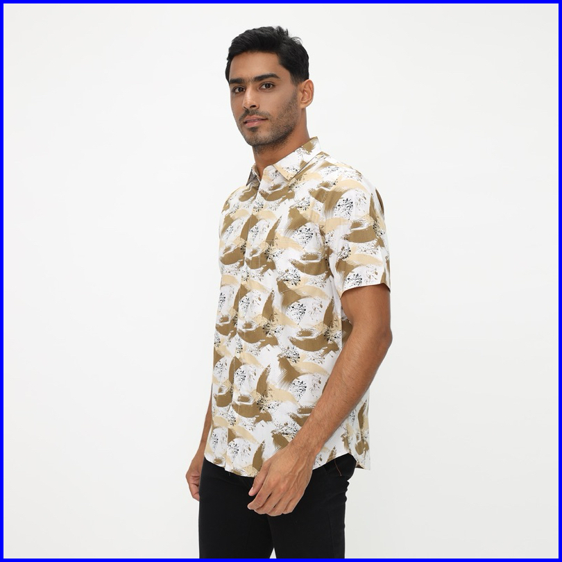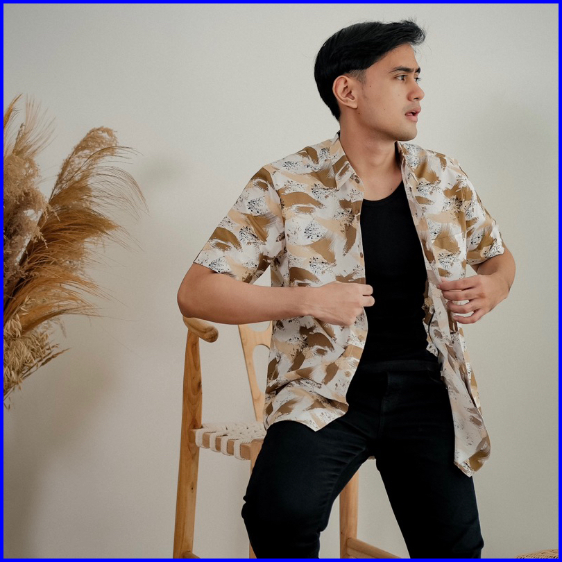 Bossqu21 Baju Kemeja Pria Motif Print Lengan Pendek 33238 Khaki