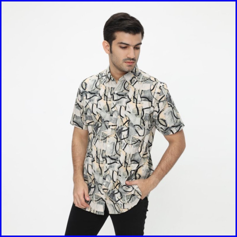 Bossqu21 Baju Kemeja Pria Lengan Pendek Modern Fit Katun Original 33240 Abu