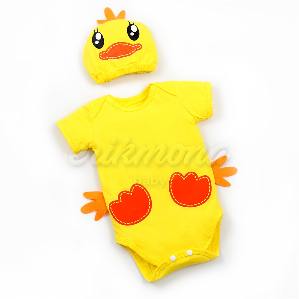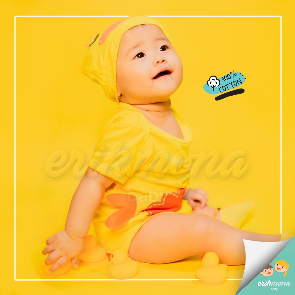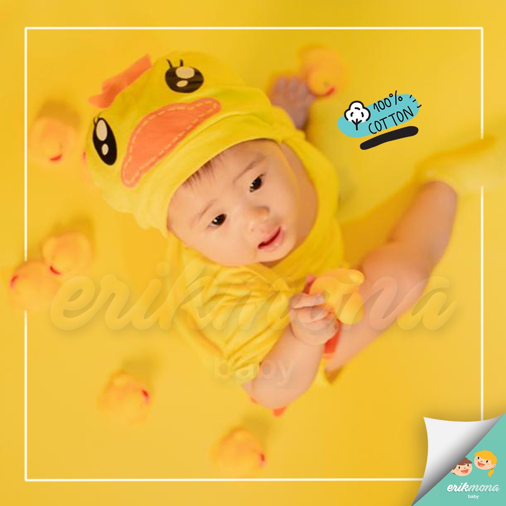Baju Bayi Laki Laki Perempuan Jumper Baby Lucu Karakter Bebek Kuning + Topi usia 0 - 12 Bulan