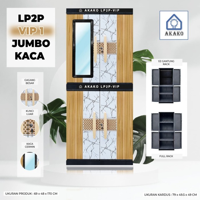 KARGO AKAKO Lemari Pakaian Plastik Baju JUMBO BESAR Mirip NAIBA MURAH LP2p VIP KACA CERMIN FULL KUNCI