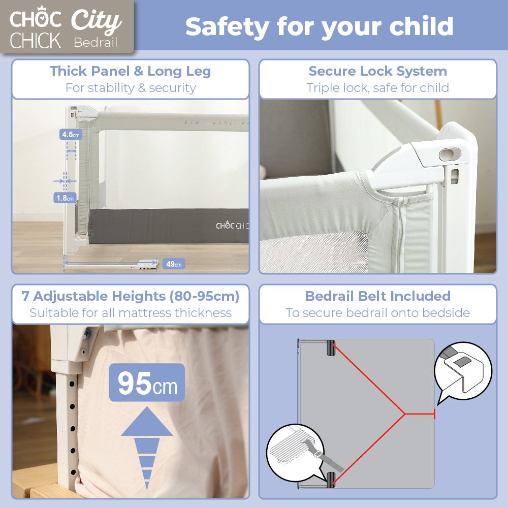Bedrail Pagar Kasur Choc Chick ⭐️CITY⭐️ [200cm, 180cm, 160cm, 120cm] Strong & Tall Kokoh Kuat