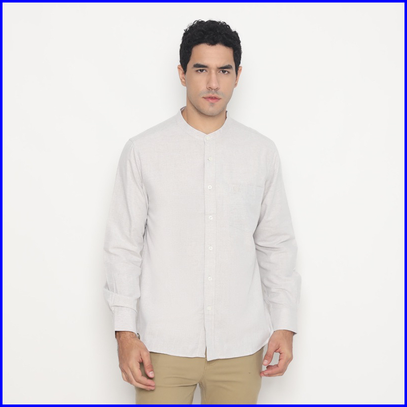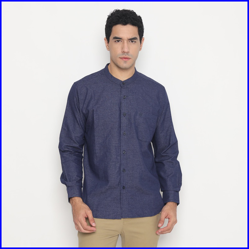Bossqu21 Kemeja Koko Pria Baju Kokoh Lengan Panjang Modern Fit 66809 Navy Hitam Cream