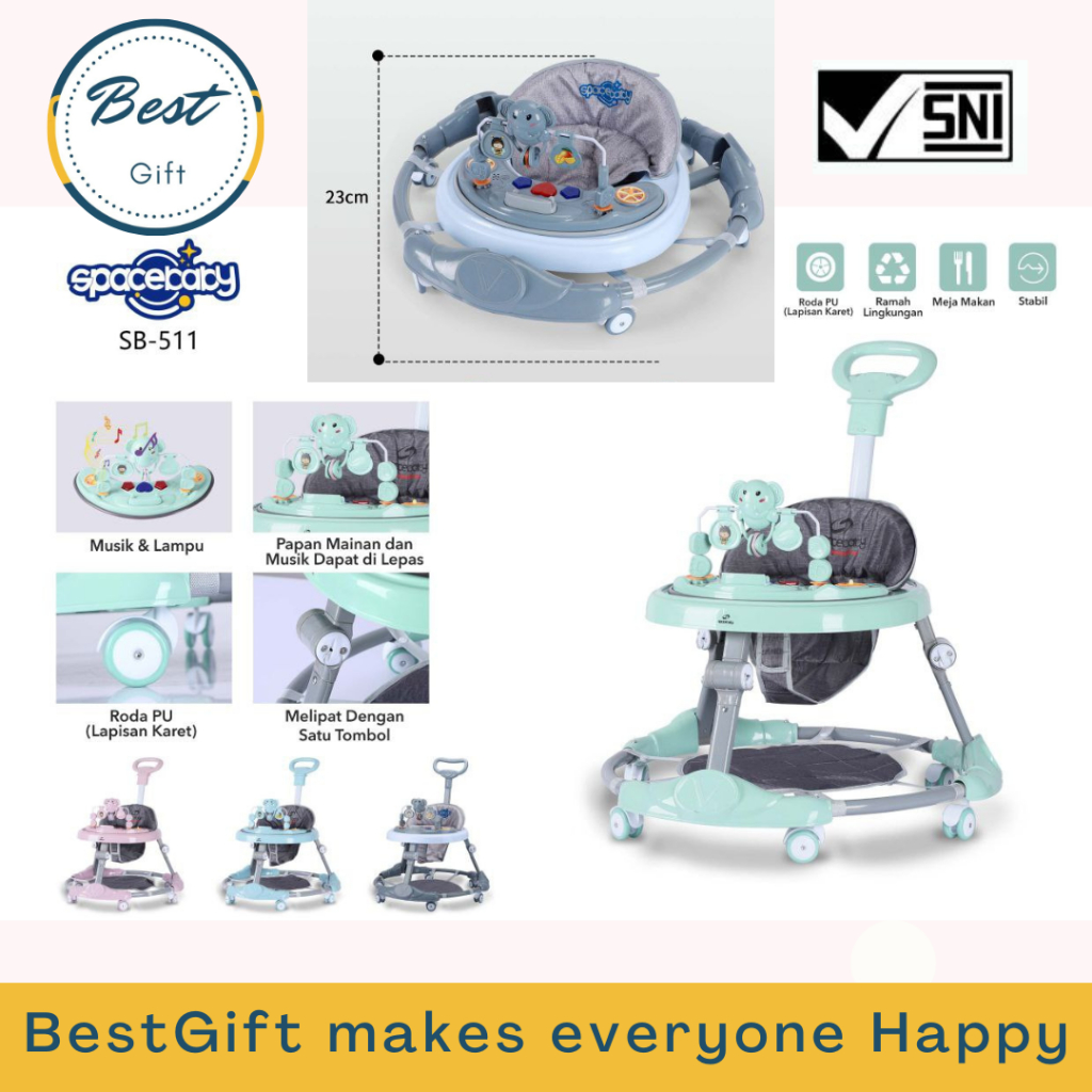 Baby Walker SB-511 Elephant Stir Spacebaby Musik Mainan