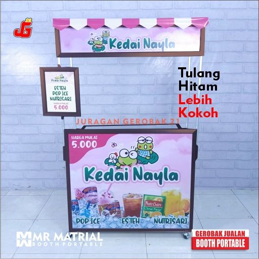 Booth Portable Juragan Gerobak 21 Tulang Hitam Jumbo Meja Lipat Jualan