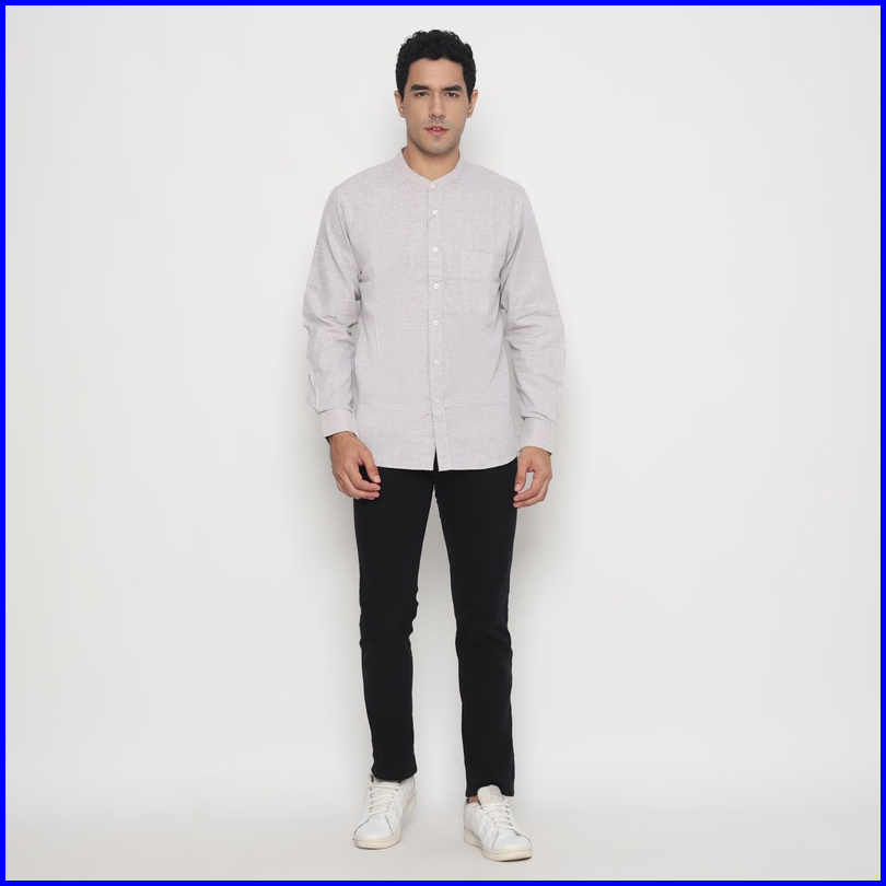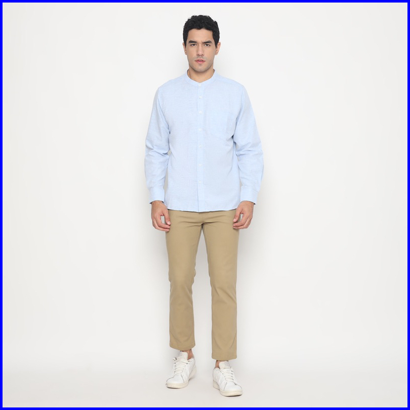 Bossqu21 Kemeja Koko Baju Kokoh Pria Lengan Panjang Modern Fit 66809 Coklat Biru Muda