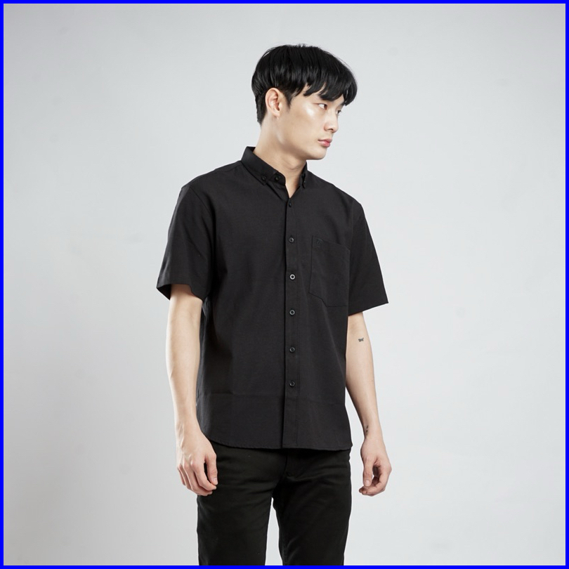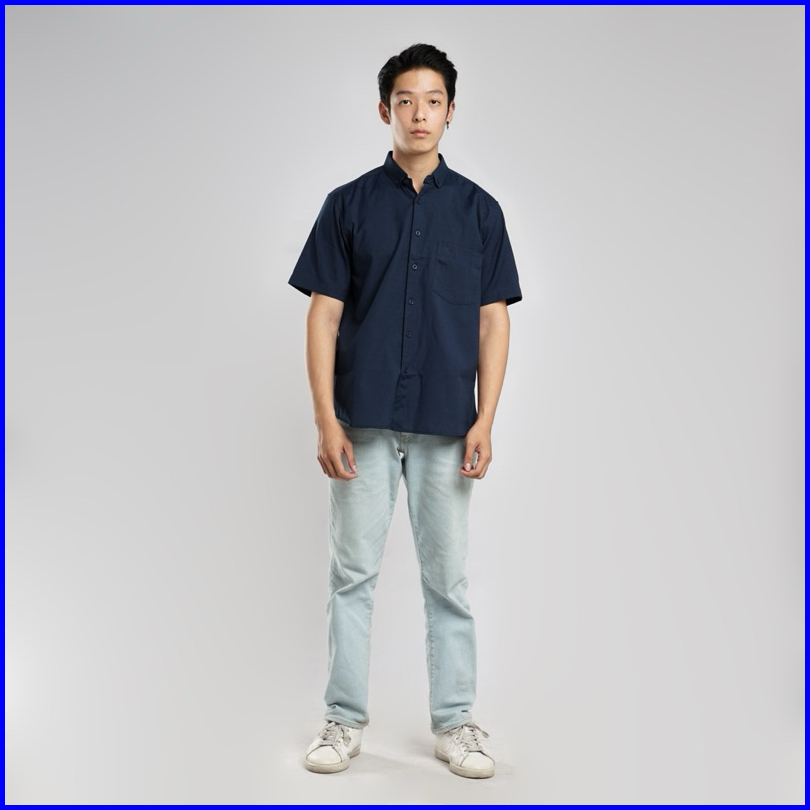 Bossqu21 Kemeja Pria Polos Lengan Pendek 33207 Hitam Navy