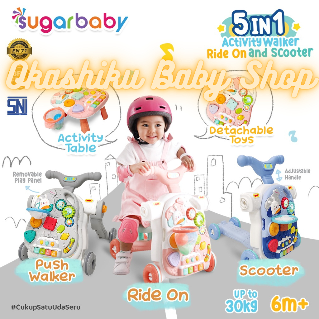 Sugarbaby 5in1 Activity walker, Ride on scooter activity table walker toys mainan anak