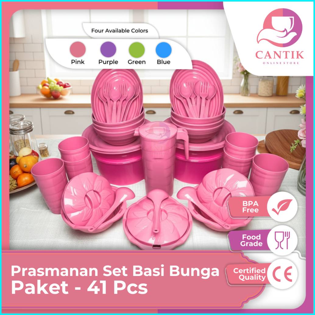 Paket Prasmanan Set 41 Pcs Super Gokil 6 Piring Bulat 6 Mangkok 3 Basi Bunga Mini 6 Gelas Ulir 2 Piring Oval 1 Teko Kulk