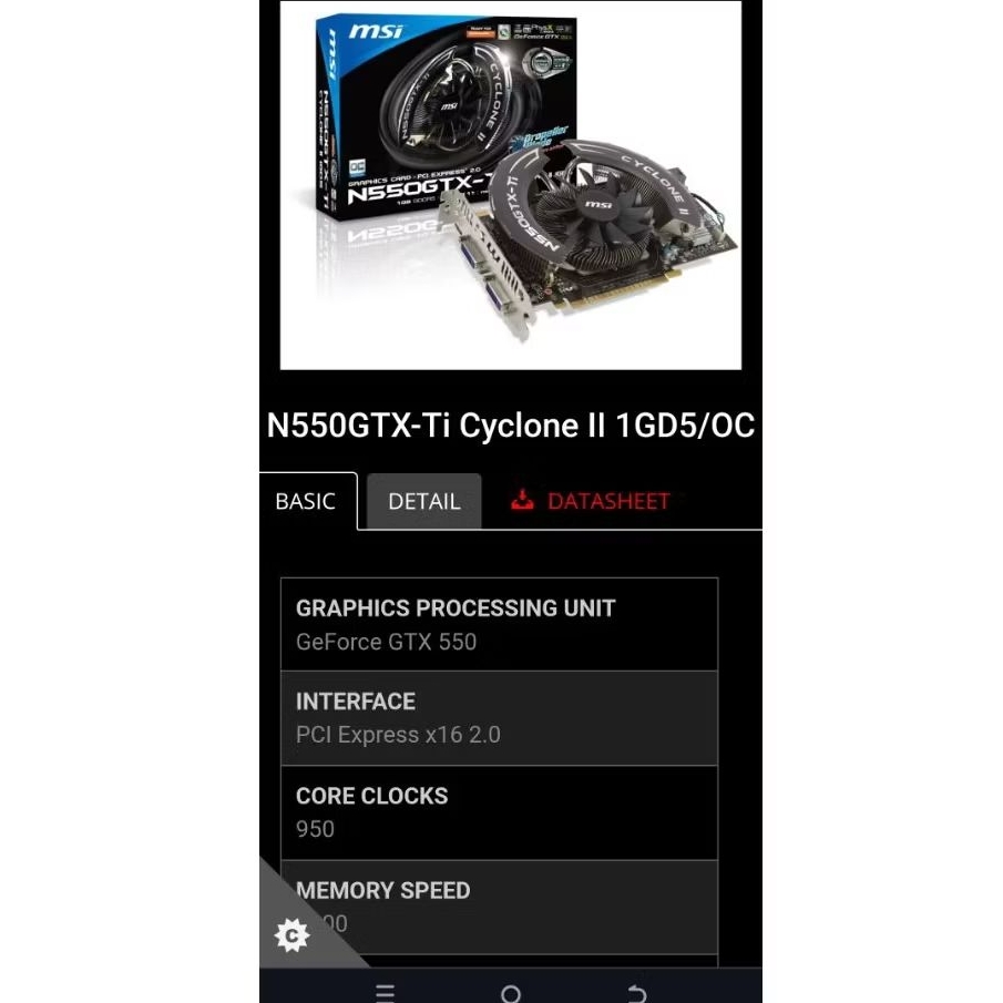 VGA MSI GTX550 Ti 1GD5 OC NODISPLAY FAN NORMAL