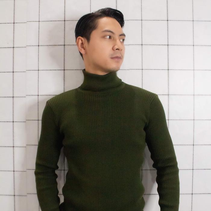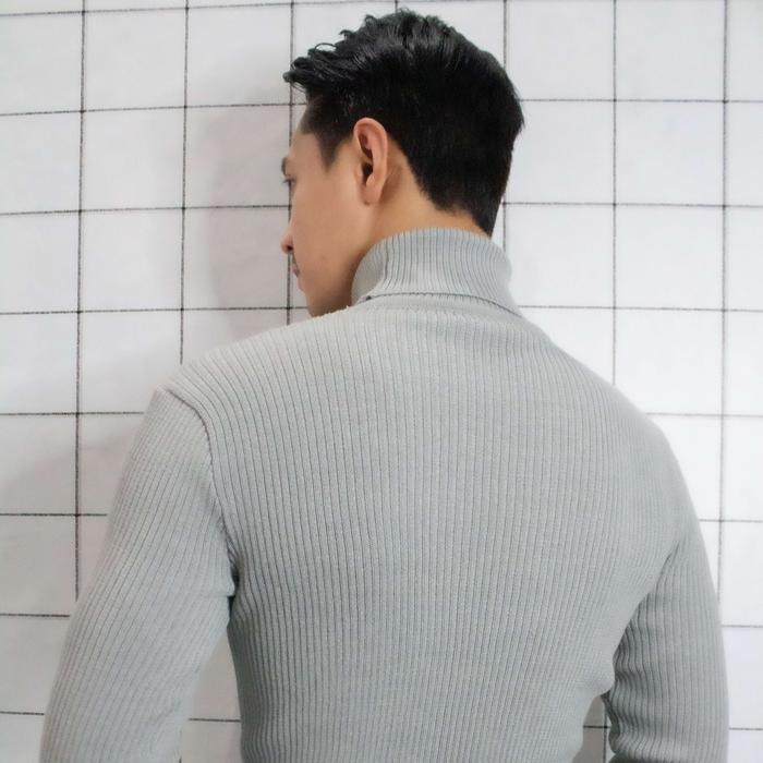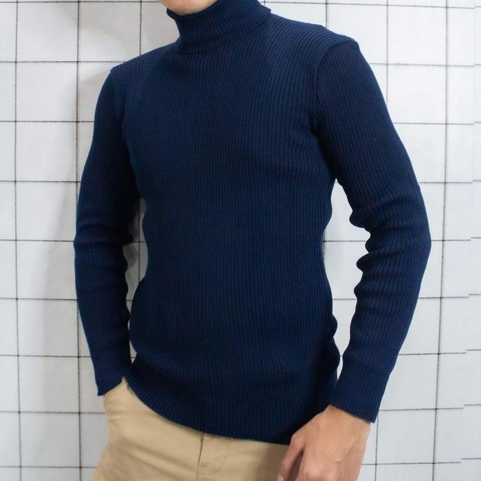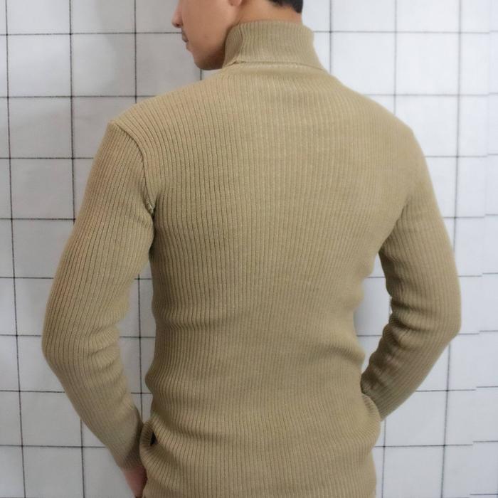 M01 SWEATER RAJUT PRIA TURTLENECK KOREAN STYLE SLIM FITTING KNITWEAR BAJU JAKET KERAH PANJANG TEBAL - HITAM