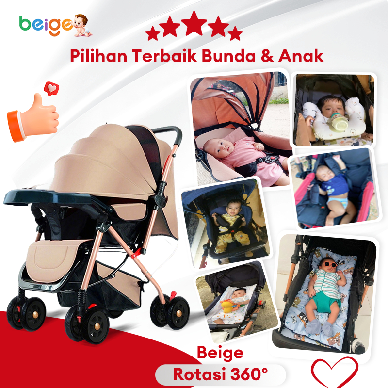 BEIGE Stroller Bayi Lipat 2 Arah Muatan 100kg Ringan untuk Travel Aktivitas Harian
