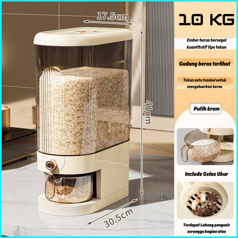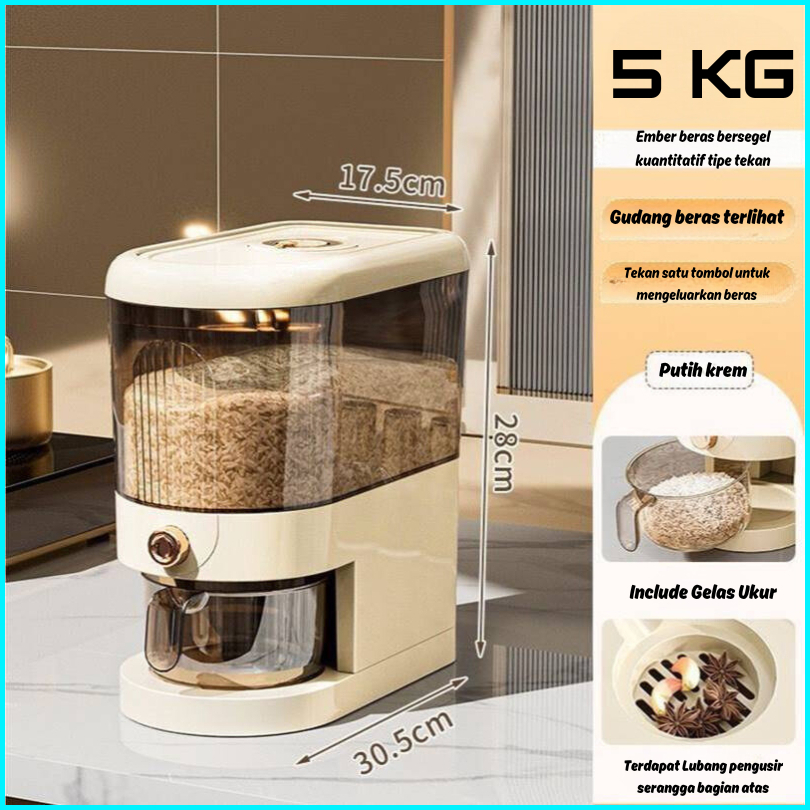 Alby Mart Dispenser Beras Mewah Estetik Kotak Tempat Wadah Penyimpanan Beras Rice 5kg 10kg