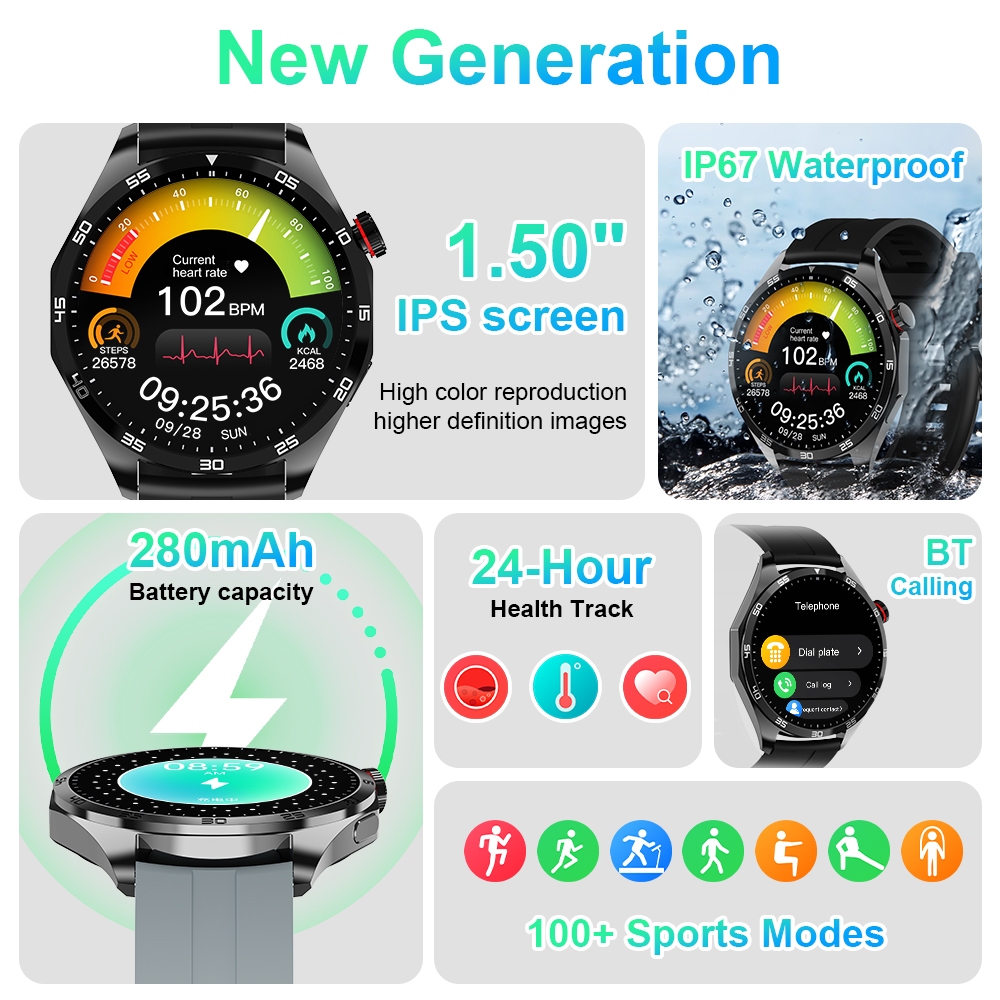 Simbojoy Smartwatch AMOLED AOD Metal Case Running Pace Waterproof 100+ Sport Modes 24H Health Monitoring Bluetooth Call Smart Watch 200+ Watch Face Smart Watch
