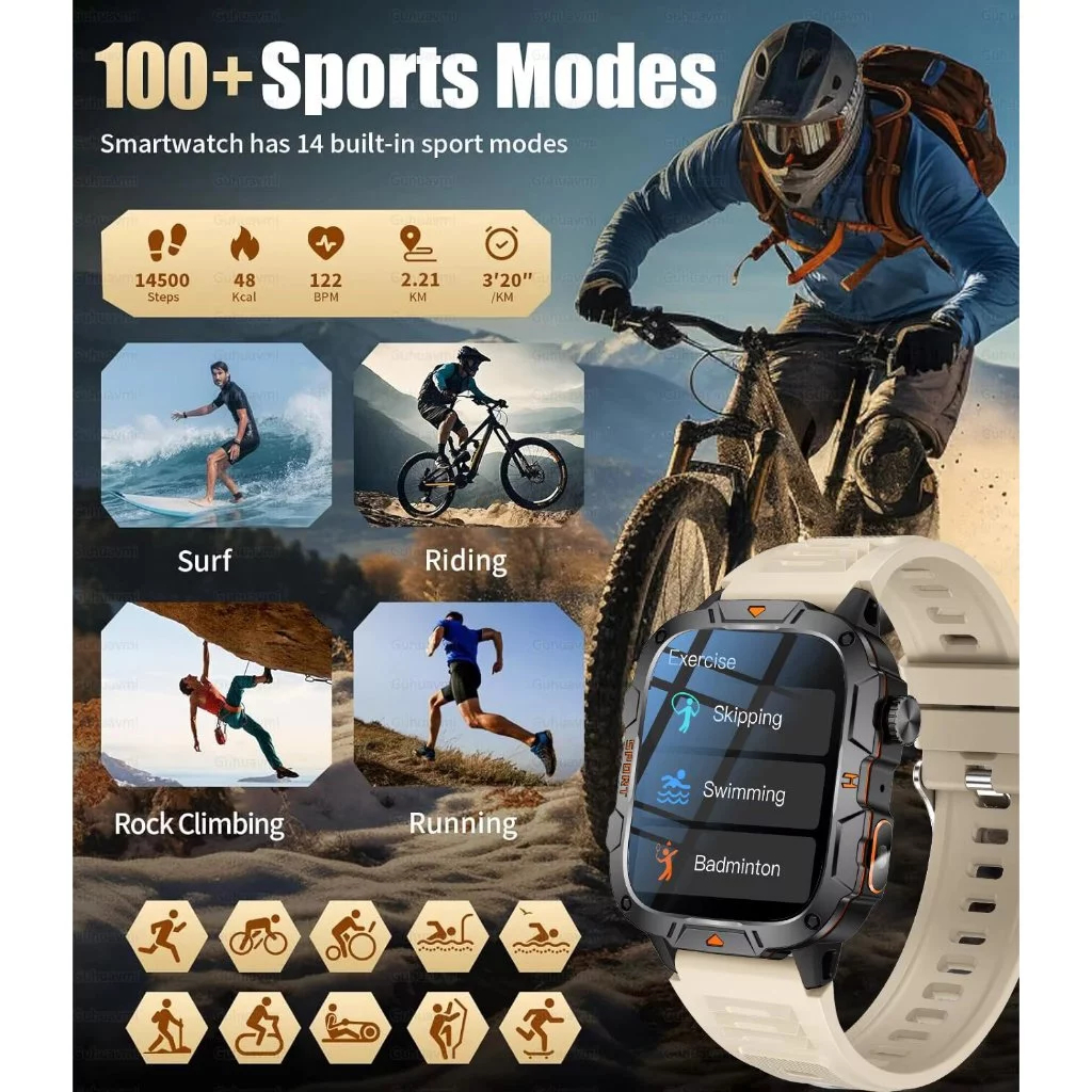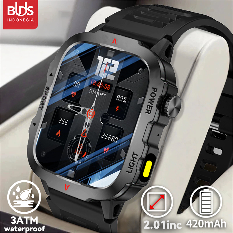 BUDS Outdoor Smartwatch Jam Tangan Pintar Pria 2.01inch 420mAh IP68 Tahan Air 100+ Olahraga Panggilan Bluetooth Deteksi Denyut Jantung Jam Tangan Pintar Militer Kasar untuk Android dan IOS