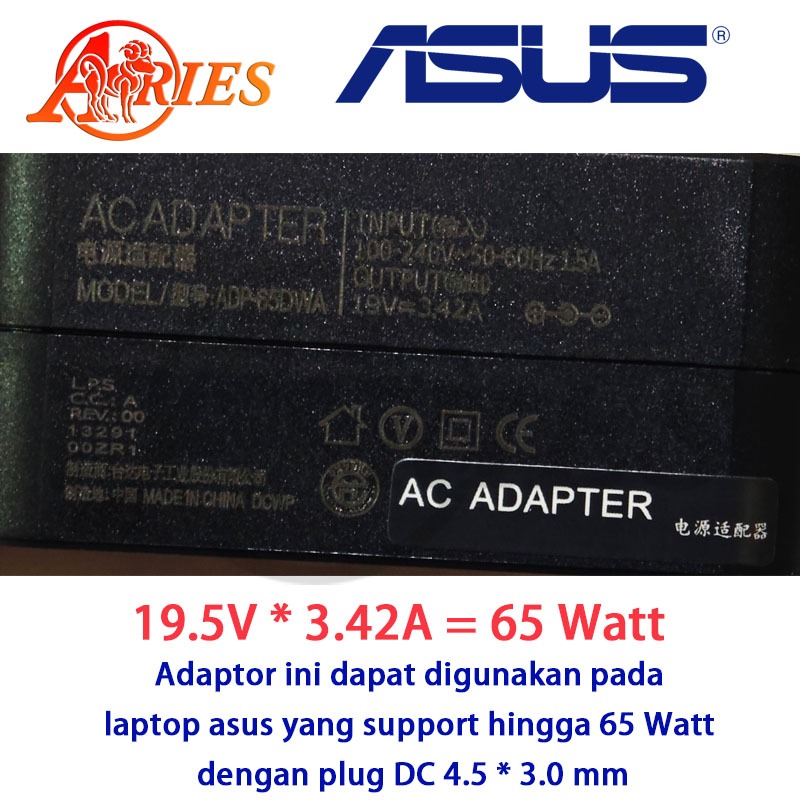 Adaptor Charger Laptop Asus 65 Watt Vivobook OLED X1505VA Series Asus Pro Essential P2530U PRO P2540FB Zenbook Duo UX481