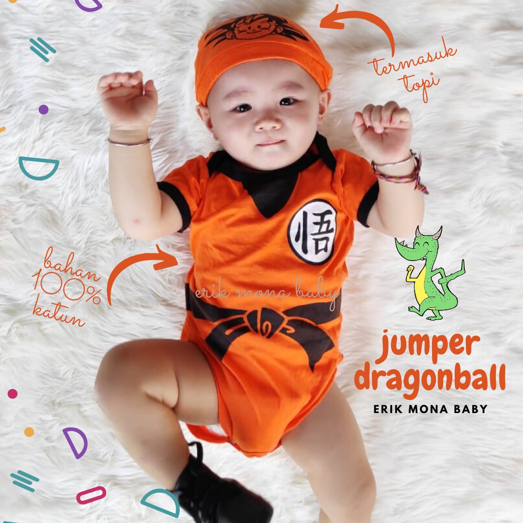 Baju Bayi Laki Laki Jumper Baby Lucu Karakter motif Dragonball + Topi usia 0 - 12 Bulan