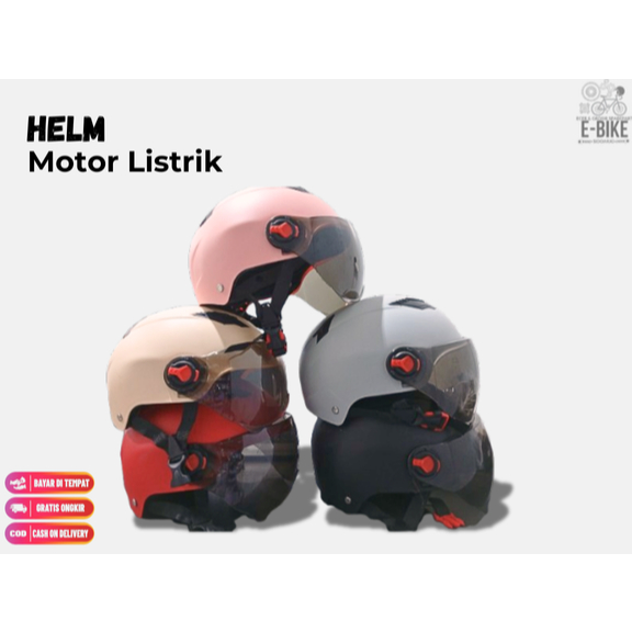 Helm Sepeda Listrik Kaca Transparan Gelap – Ringan, Termurah, Universal- Cocok Segala Usia