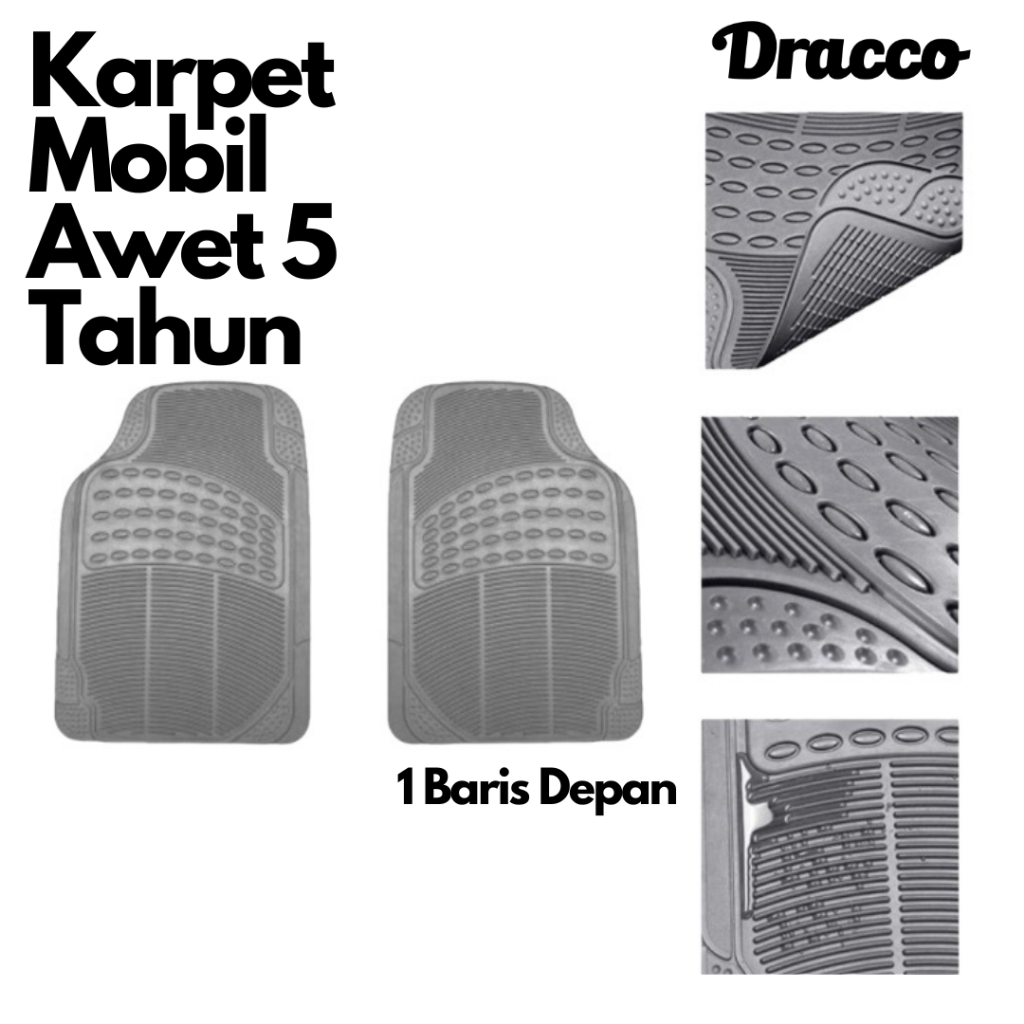 Karpet Mobil Depan Universal Tebal Anti Slip DRACCO – Mudah Dicuci, Tahan Air, Universal - Grey Abu