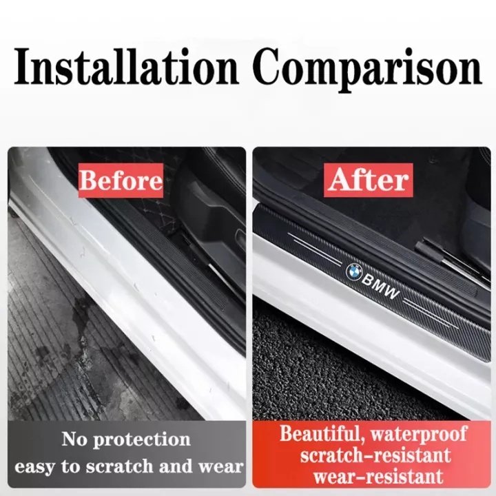 XYKJ 4PCS Sill Plate Mobil Stiker Pelindung Melindungi Carbon Fiber Sticker Stiker Pelindung