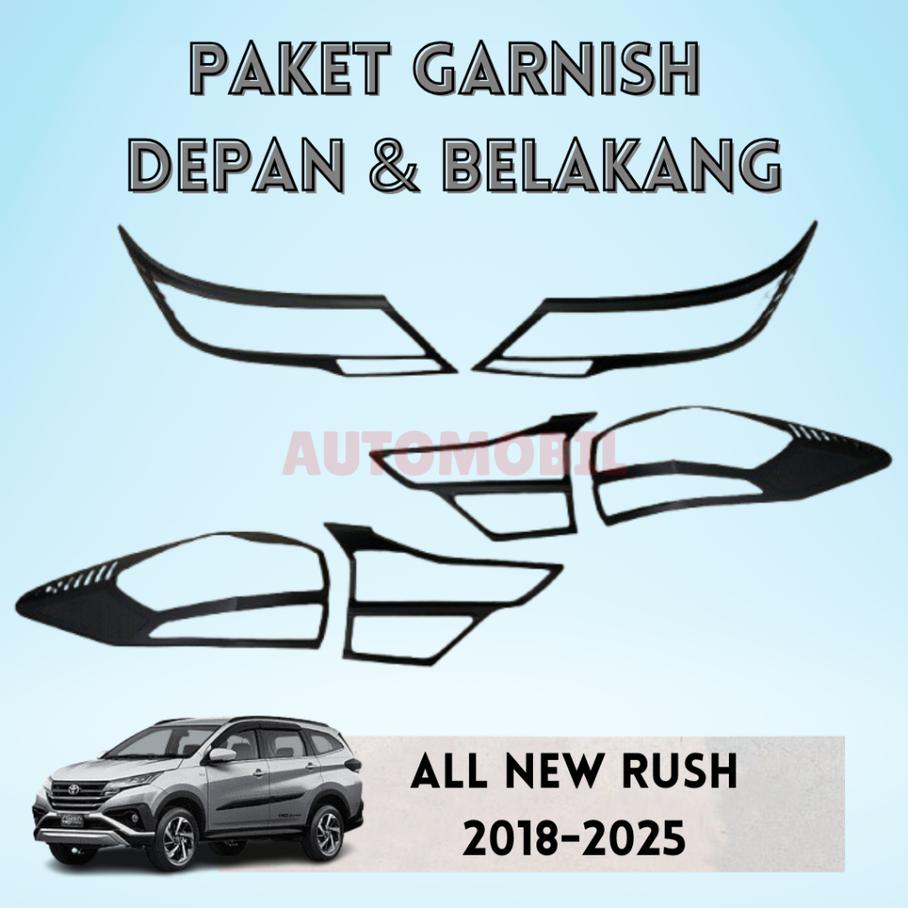 PAKET Garnish Cover Lampu Depan Dan Belakang ALL NEW RUSH TERIOS 2018-2025 Hitam Doff