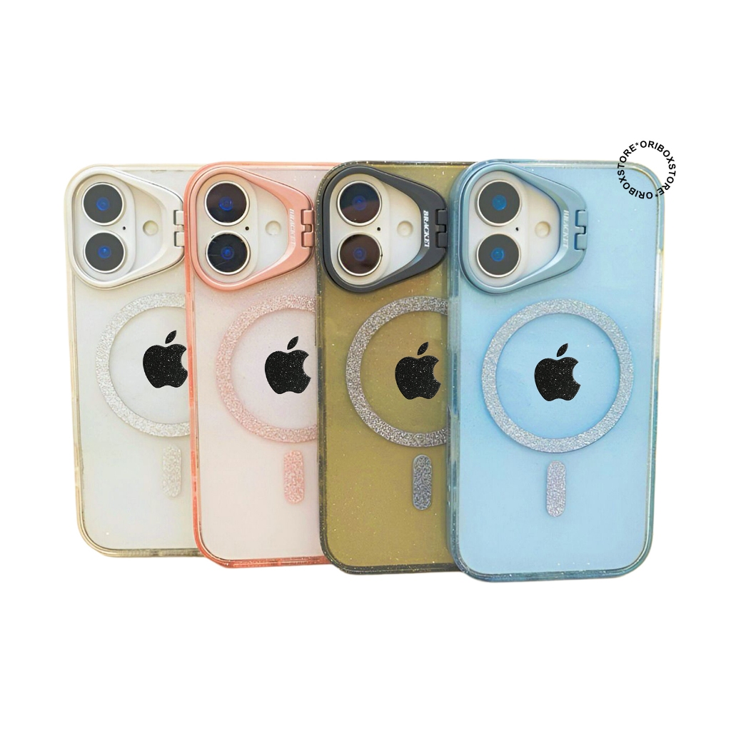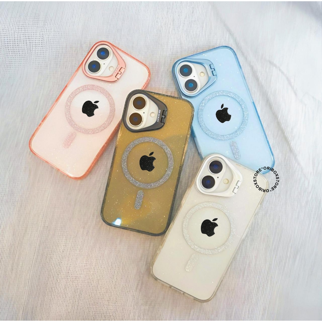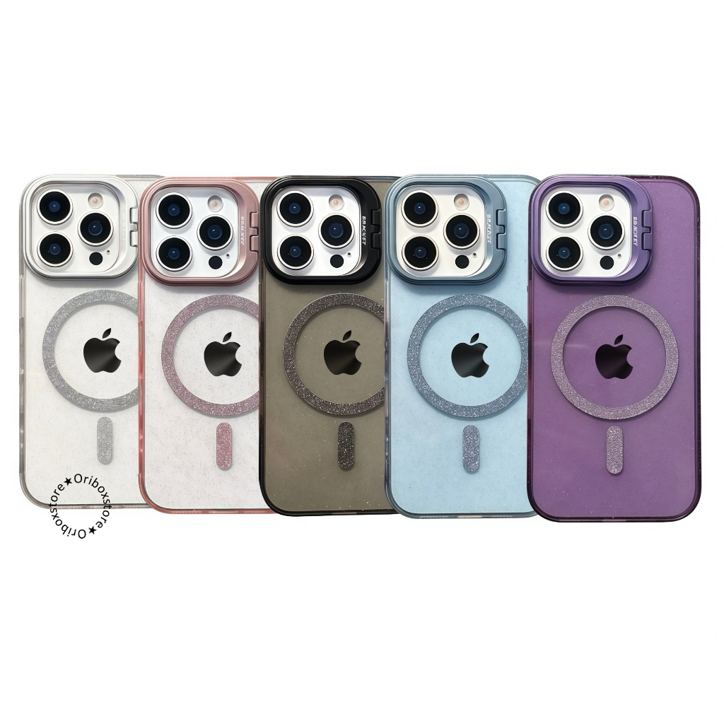 Glitter Magnetic Lens Stand Holder Case - Hardcase /Casing Hp Compatible For iPhone 11 12 13 14 15 16 17 17AIR Plus
