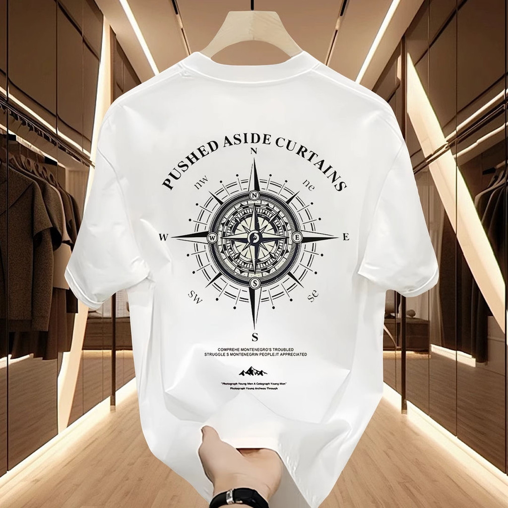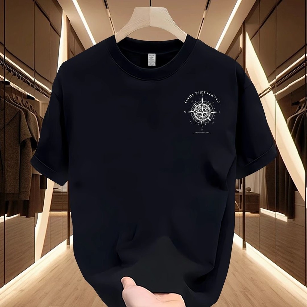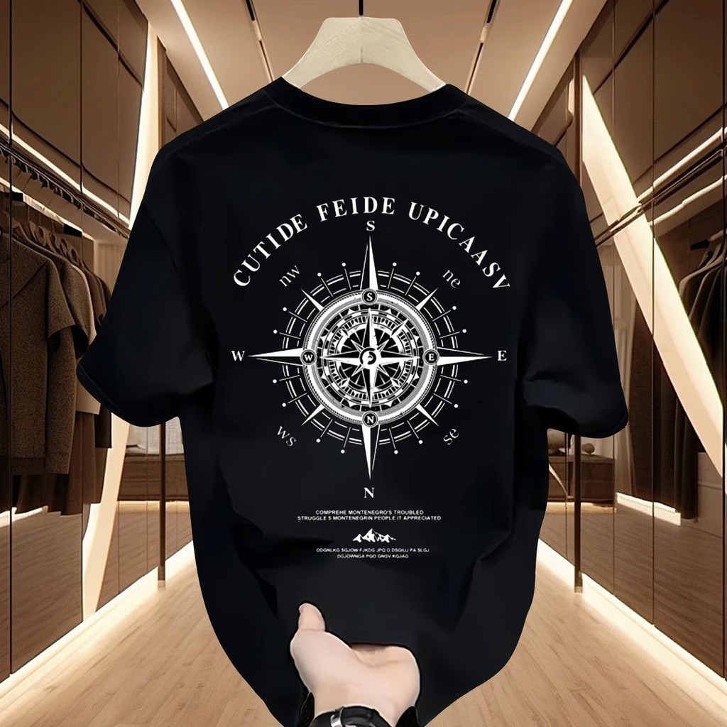 【】Kaos Lengan Pendek Oversize Unisex Kompas Vintage Nautical - 100% Katun Distro Berkualitas, Kaos Hitam Trendy Pria Wan