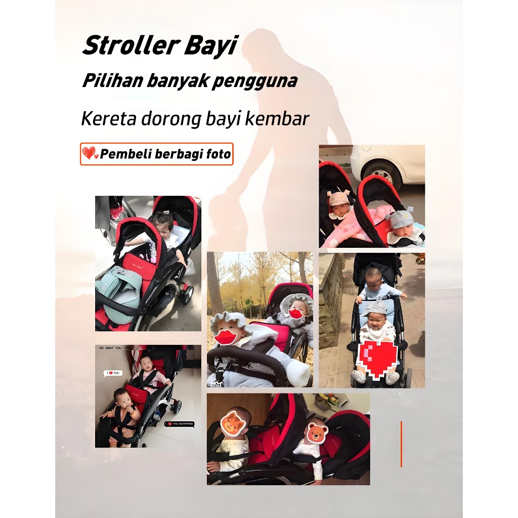 【Garansi Seumur Hidup】Stroller Twin Dapat Dilipat Stroller Kembar Travelling Troli Bayi Maksimum 50kg