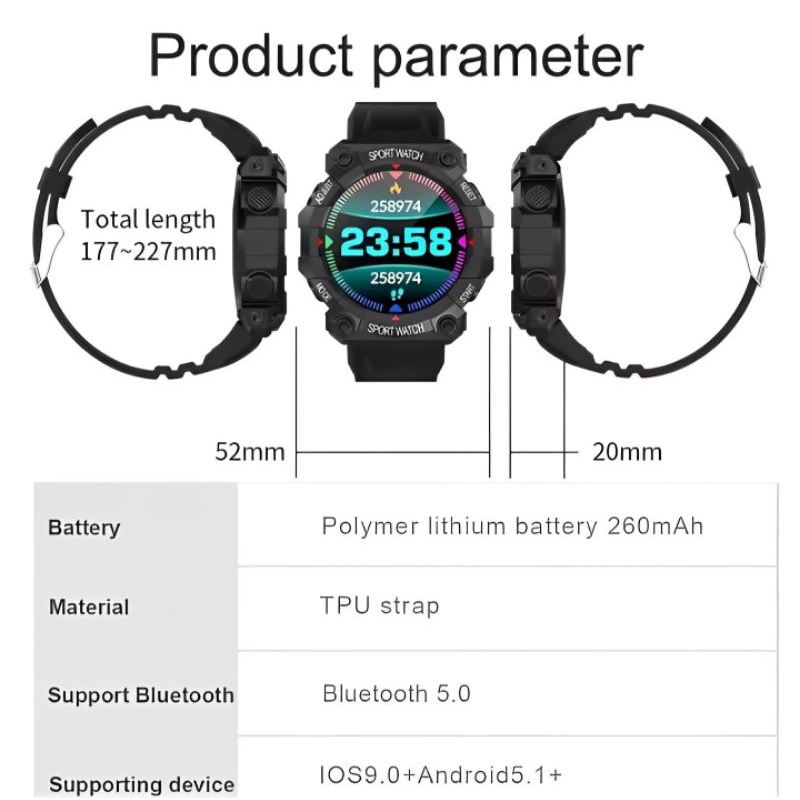 Jam Tangan Hp Android Sport Pria Wanita Smartwatch FD68 Plus Swart Watch Anti Air Notif GPS Tracker Original