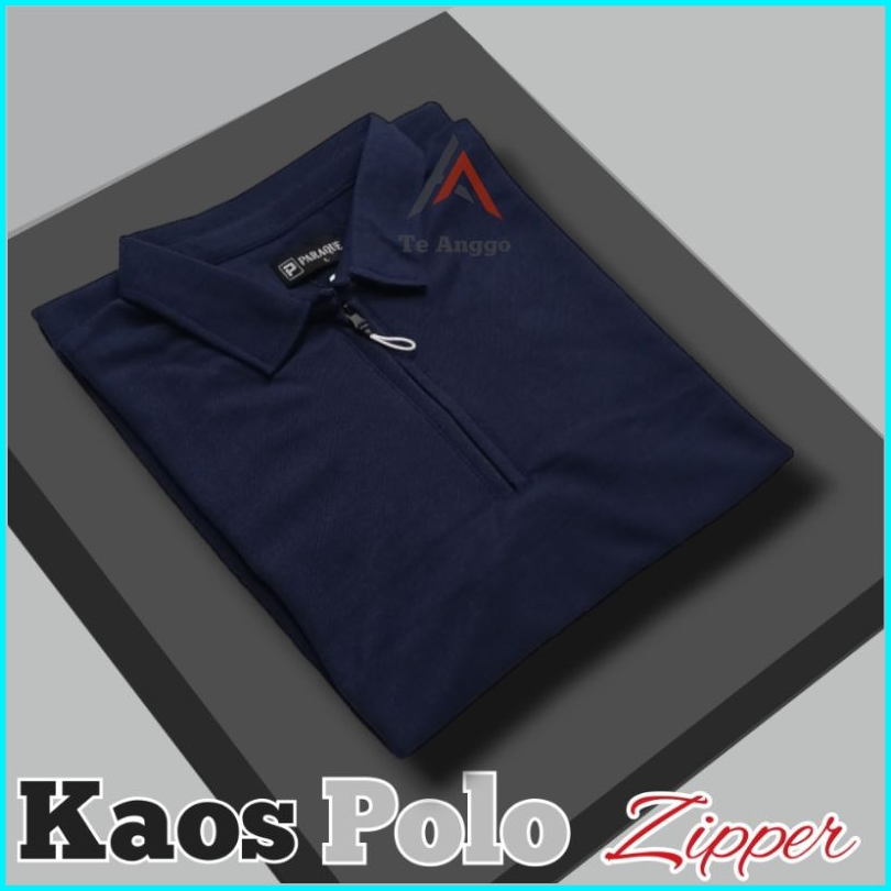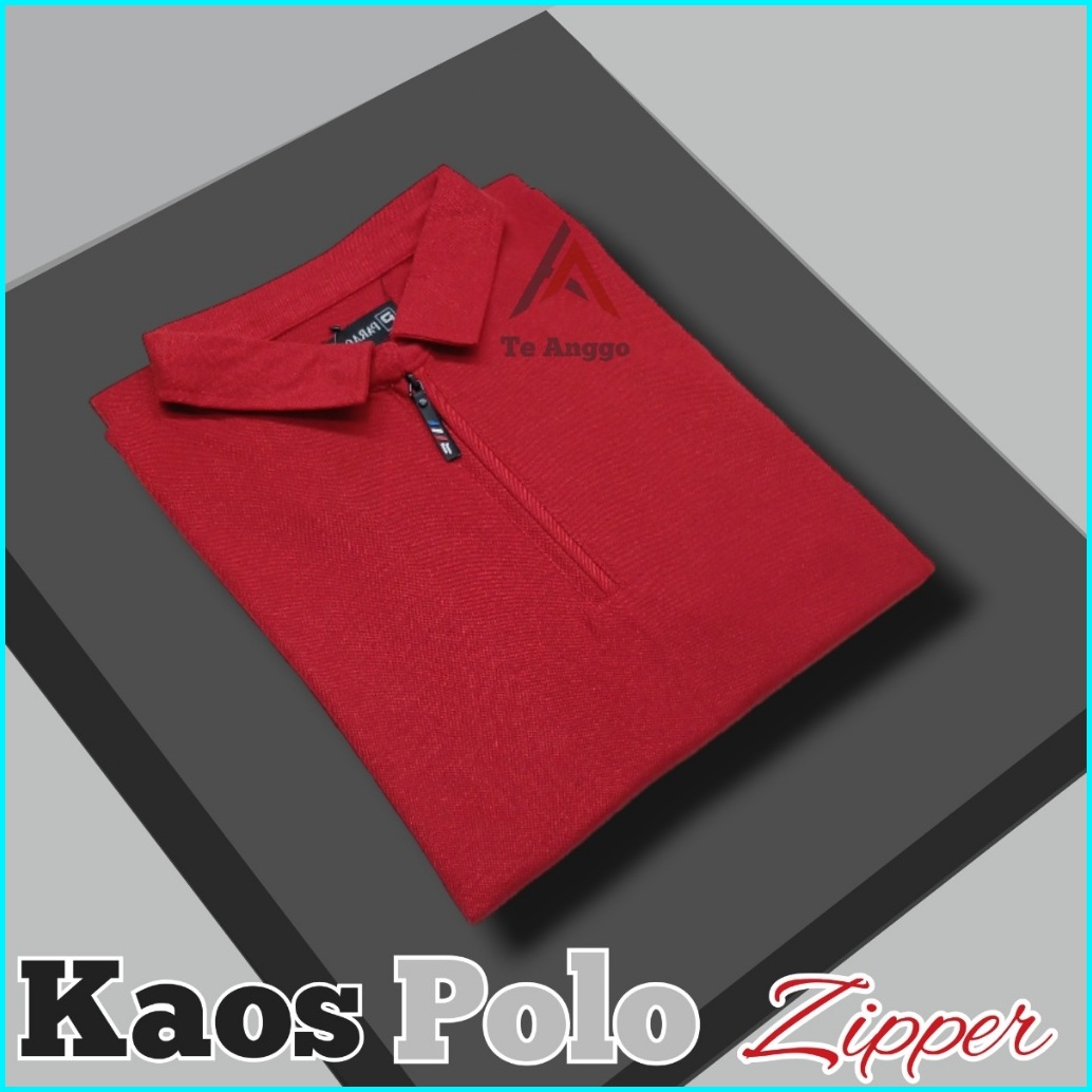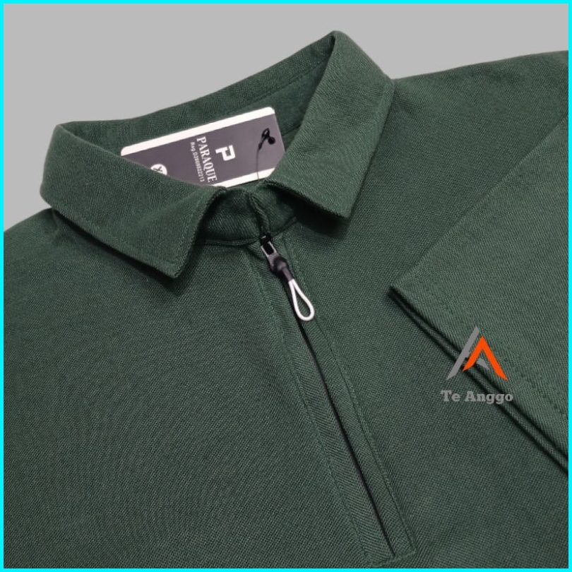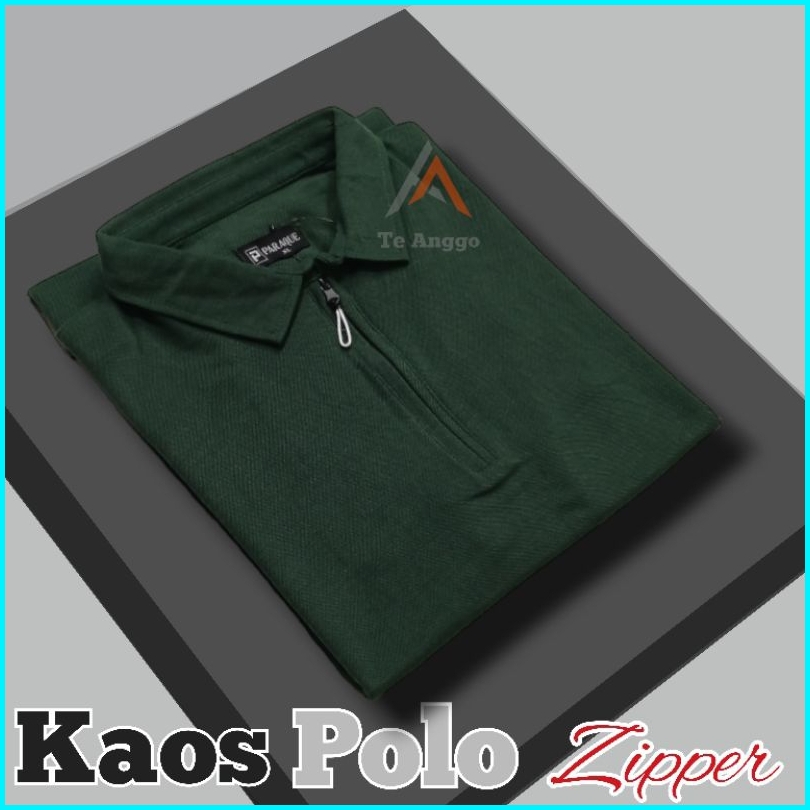 Kaos Polo Zipper Pria Kerah Lengan Pendek Polo Shirt Zipper Polos Hijau Botol M L Xl Xxl