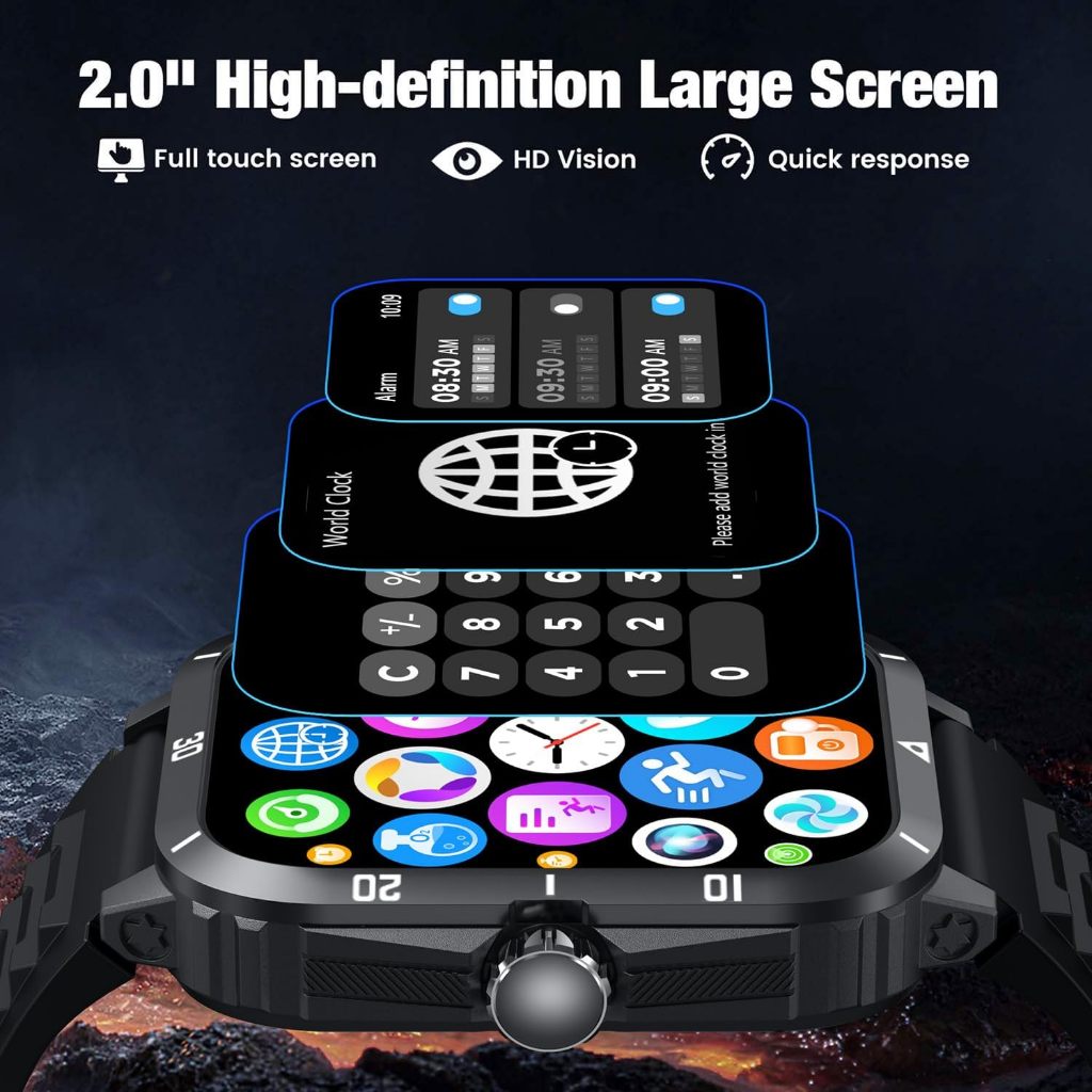 ENC Military Smartwatch for Men 1.96'' Big Screen Tactical , Jam Tangan Pria Smartwatch 430mAh Big Battery | Fitness Tracker | Heart Rate | Sleep Monitor Make | Bluetooth calling for iPhone Android