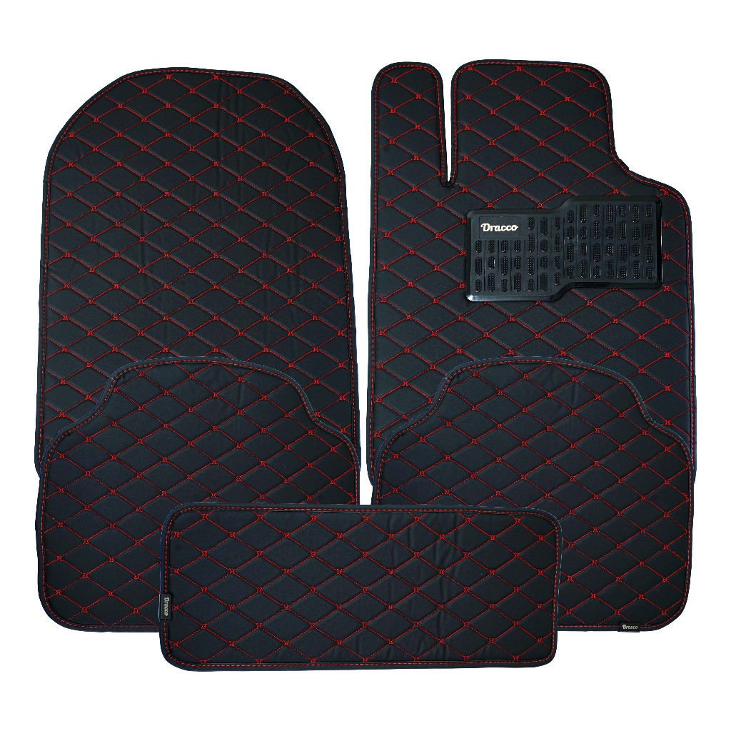 DRACCO Karpet mobil kulit 2 baris HITAM MERAH premium universal waterproof car mats leather
