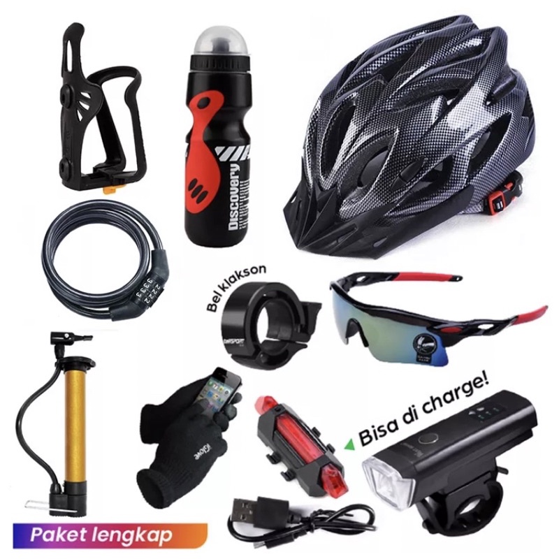 PROMO***Paket Helm Sepeda Super Komplit 10 in 1 Paket Lengkap, Hemat / Murah dan Berkwalitas