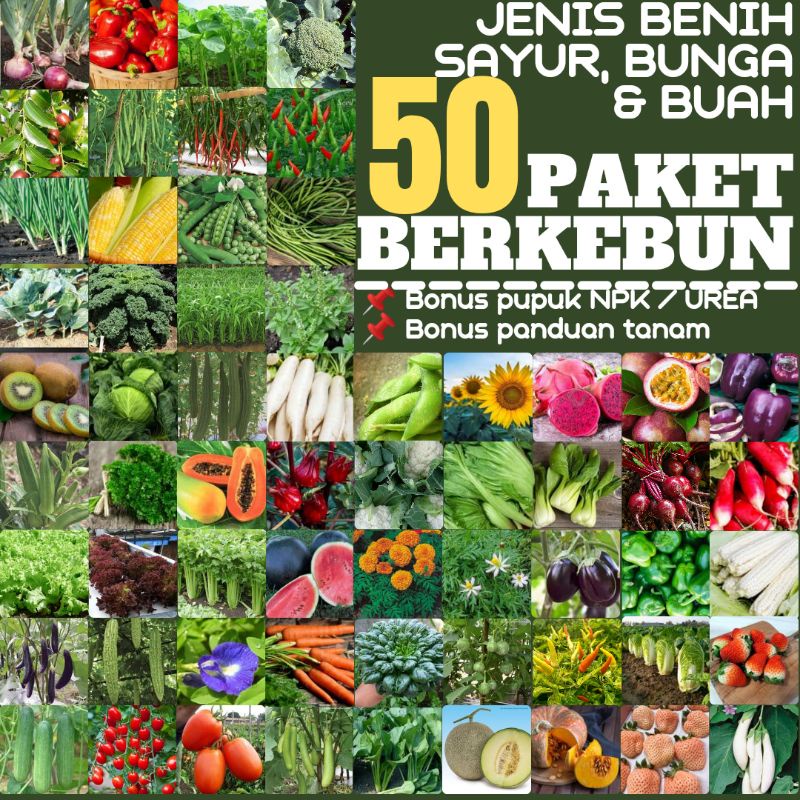 Paket 50 Benih Sayuran Lengkap Berkualitas Free Pupuk