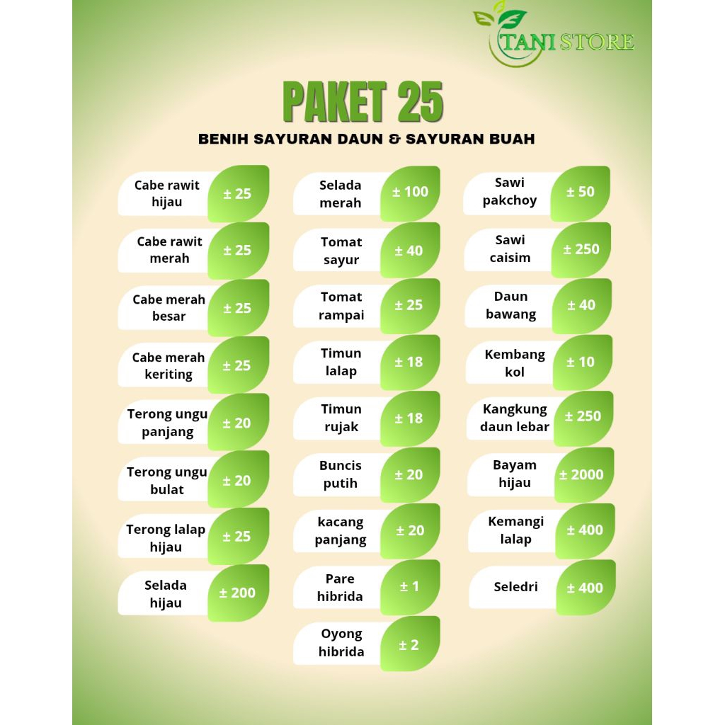 Paket Lengkap 25 Macam Benih Bibit Sayuran Rumahan Sayuran Daun dan Sayuran Buah