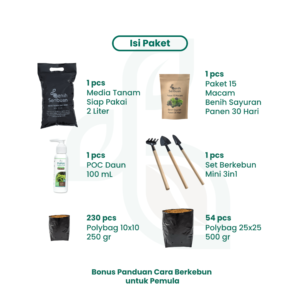 Benih Seribuan - Greenbox Sprint - Paket 15 Benih Sayur Panen 30 Hari + Media & Alat Tanam Lengkap