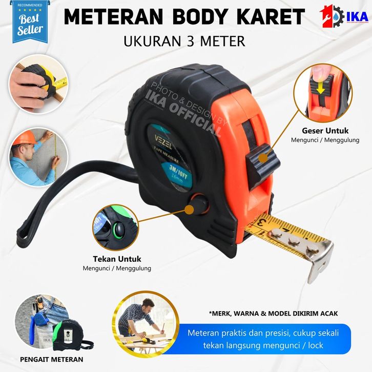 PAKET Meteran + Wateas Magnet 23cm 3cm Watteas 9 Inci 12 Inci Magnetic Alat Ukur Tukang Ukur Kemian