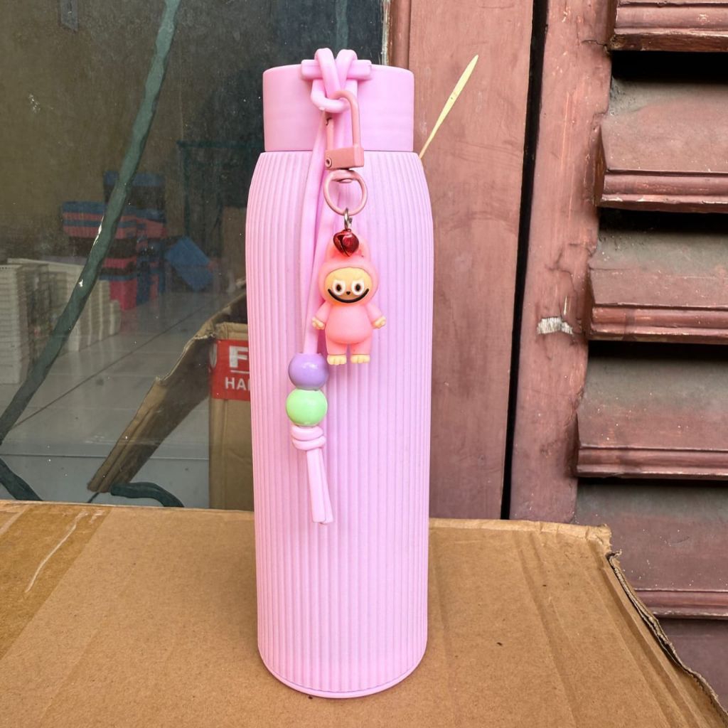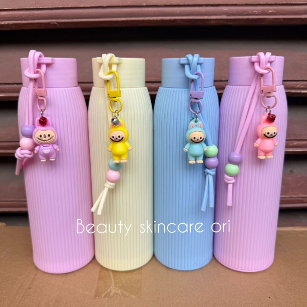Tumbler Jepang/Botol Minum Macaroon Kaca 500mL Bonus Gantungan Boneka Labubu Botol Minum Cantik Viral Lucu Terbaru Tumbler Aesthetic
