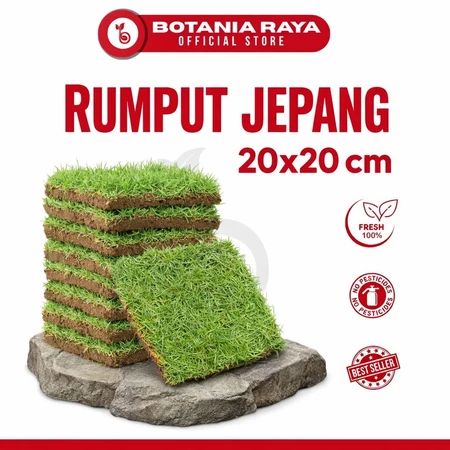 Rumput Jepang Hidup 20x20 cm Mudah Tumbuh / Rumput Hias Taman & Makam Hijau Segar