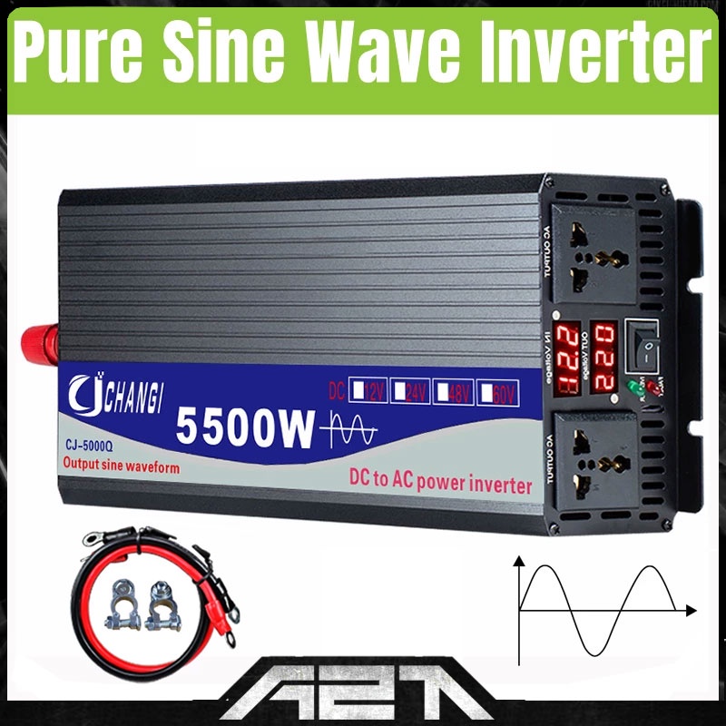 5500W Pure Sine Wave Inverter DC 12V To AC 220V Voltage Transformer Solar Double Digital Display Power Inverter