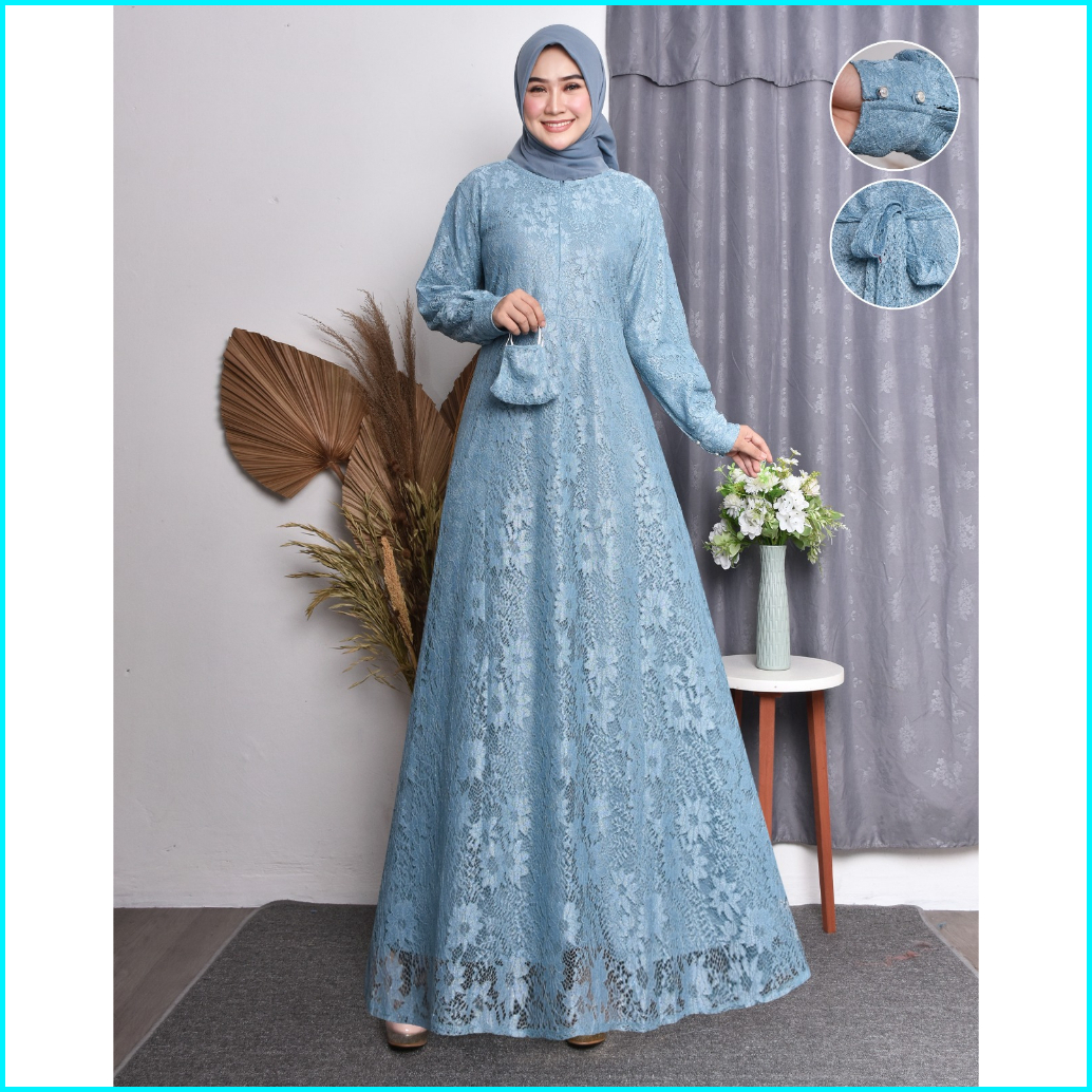 Arora.shop Gamis Wanita Premium Burkat Terbaru Gamis Wanita Jumbo Burkat Dress Kondangan Cewek Kekinian Free Masker