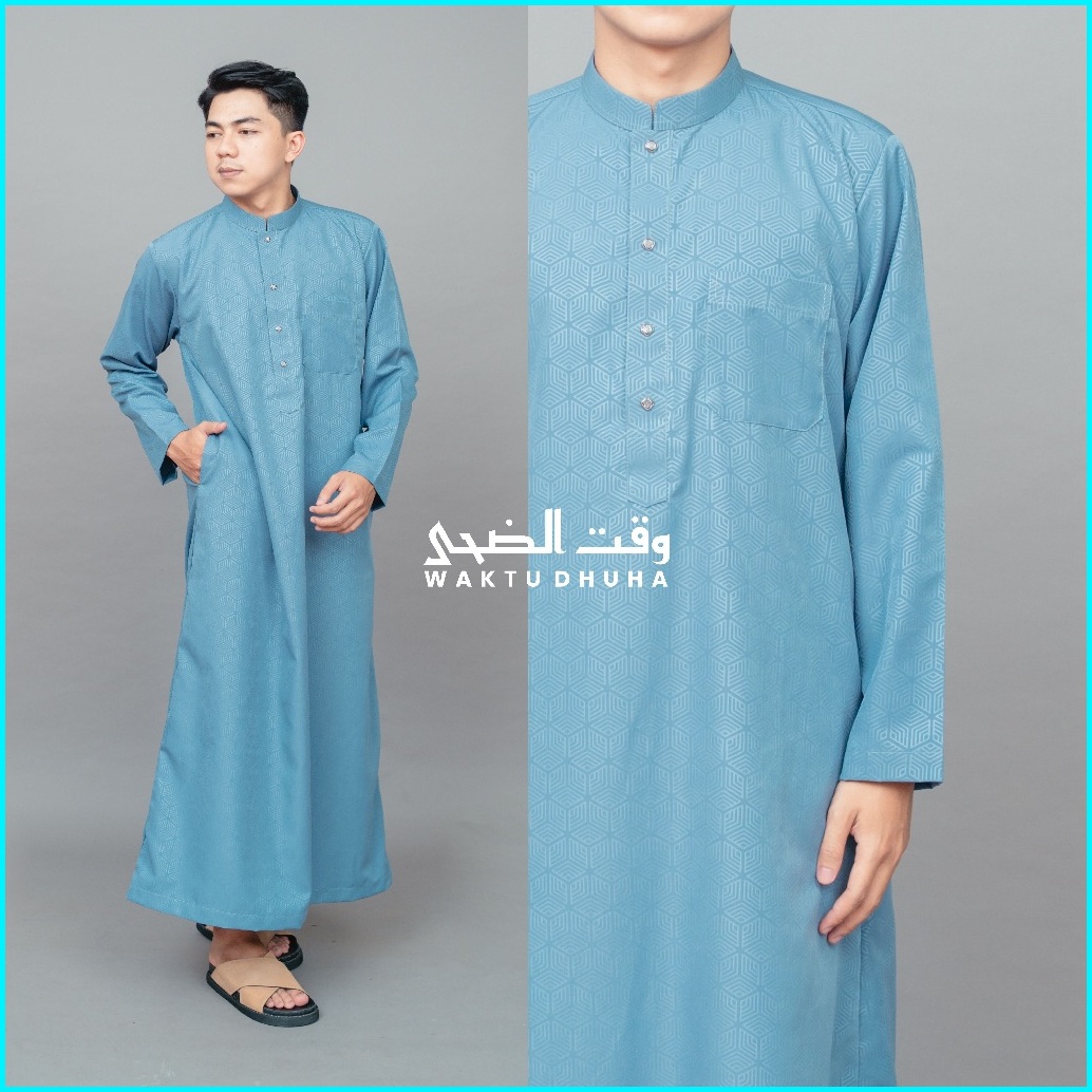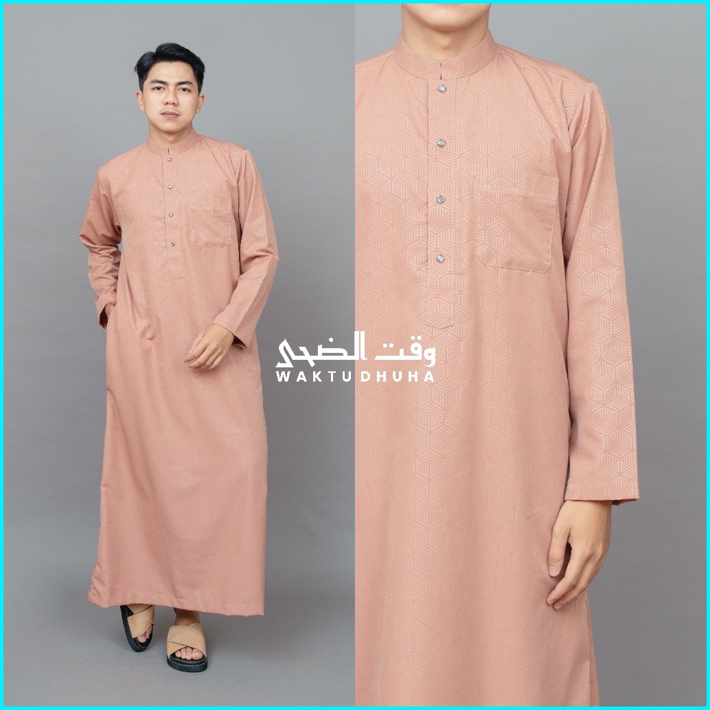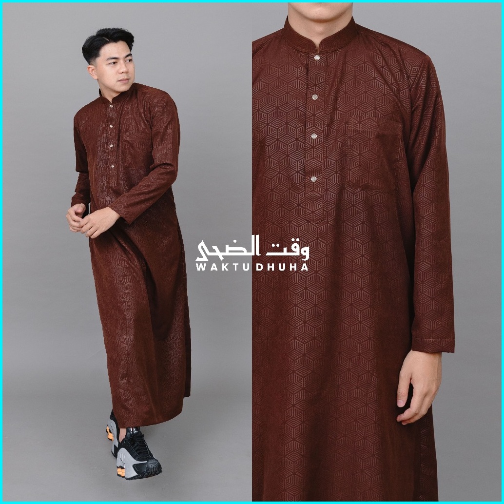 Waktu Dhuha - Jubah Malik Gamis Slimfit Pria Lengan Panjang Motif Emboss Fashion Muslim Terbaru