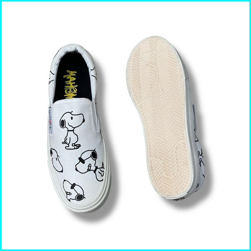 Sepatu Mahonk - Slip On Snop Og Cream Black Pria Wanita Sepatu Casual Snekers Free Kaos Kaki