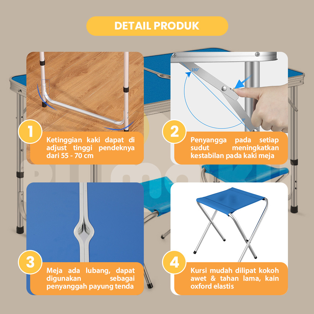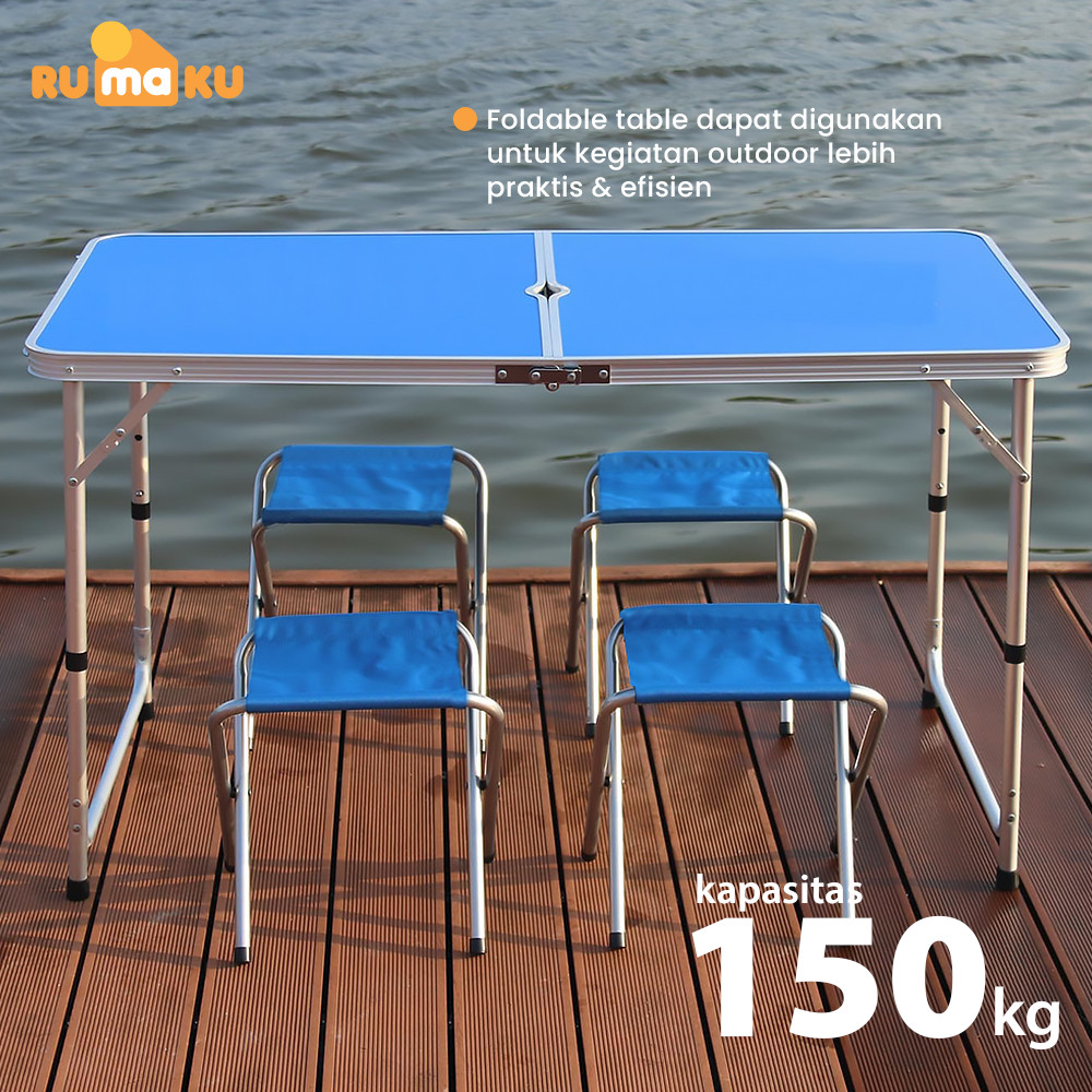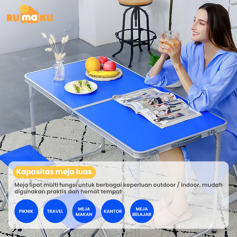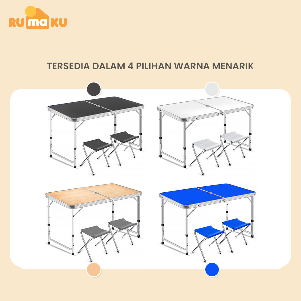 RUMAKU Meja Lipat Jualan Outdoor Piknik Camping Foldable Desk Portable Model Koper Free 2 Kursi