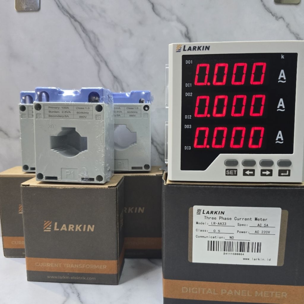 Promo Paket Digital Ampere Meter LRAA33 + CT 3Pcs Larkin 3Phase Digital Panel Meter